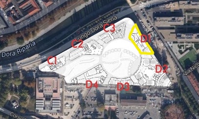 Sala Lauree Rossa, D1 Zone (highlighted in yellow below), Campus Luigi Einaudi